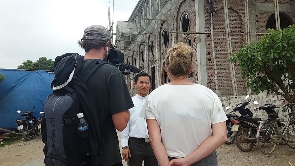 Interview and filming landscapes and Phuc Chau church, Ninh Binh. Interview with Joseph Trần Văn Định, priest in Phat Diem. Priest Dinh can speak and answer interview in French fluently.